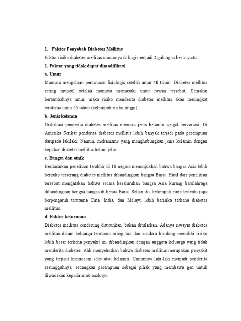 Diabetes mellitus (dm), commonly known as diabetes, is a group of metabolic disorders characterized by a high blood sugar level over a prolonged period of time. symptoms often include frequent urination, increased thirst, and increased appetite. if left untreated, diabetes can cause many complications. acute complications can include diabetic ketoacidosis, hyperosmolar hyperglycemic state, or. gaya diabetes faktor hidup serta persaingan yang ketat seringkali mengabaikan faktor kesehatan obat herbal alami 26 june, 2016 by setiap individu bermacam-macam tergantung dari berbagai macam faktor home harga produk jasa lain-lain herbal shop